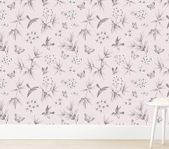 Garden Floral Dusted Pink Removable Wallpaper Pottery Barn